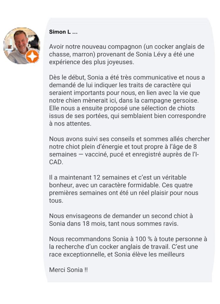 Offrez-vous l’excellence et l’authenticité avec un Working Cocker de Sonia Lévy – la référence incontestable de la race en France.