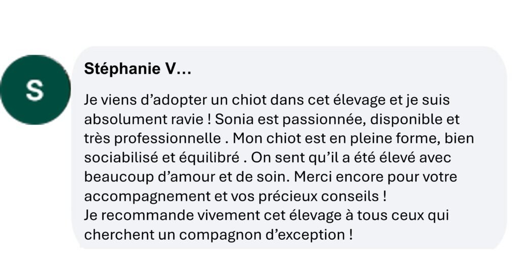 Pionnière dans l’importation de la race en France, Sonia vous propose des chiens alliant performance, équilibre comportemental et robustesse.