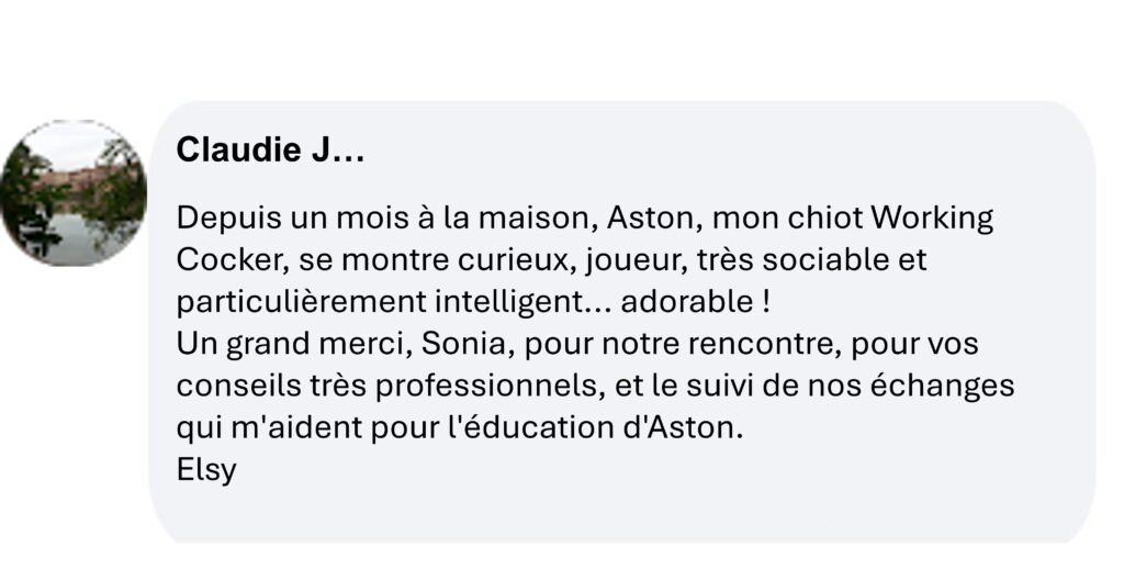 Sonia vous accompagne aussi pour le dressage de votre chien.